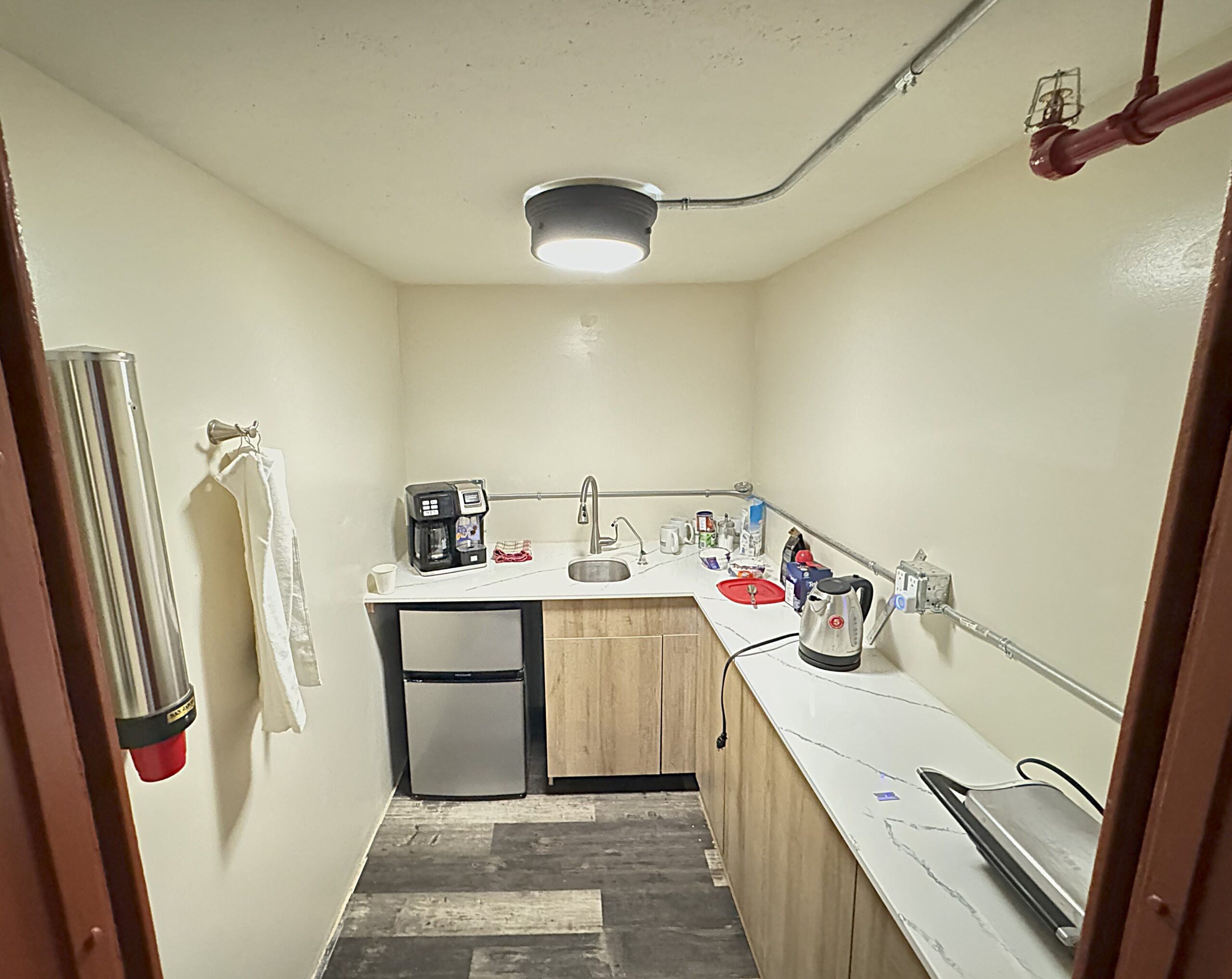 3 private air conditioned offices, (do not need any office space no problem) The office space does have a kitchenette, with access to the boardroom. On site parking. On the edge of old Galt downtown core 600 Volt / 400 amp electrical service upgraded panel with room to grow.
